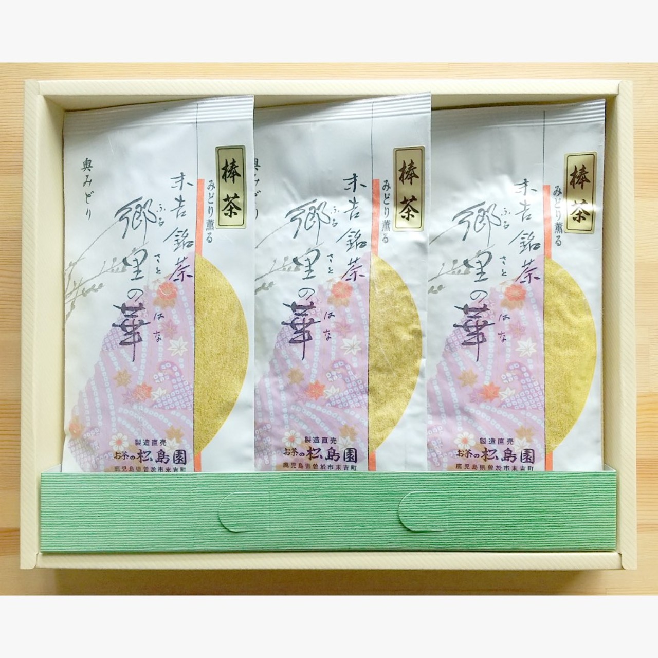 「は」セット:リーフ3本詰め合わせ(100g×3本)_奥みどり<棒茶>×3本セット (のし:蝶結び)