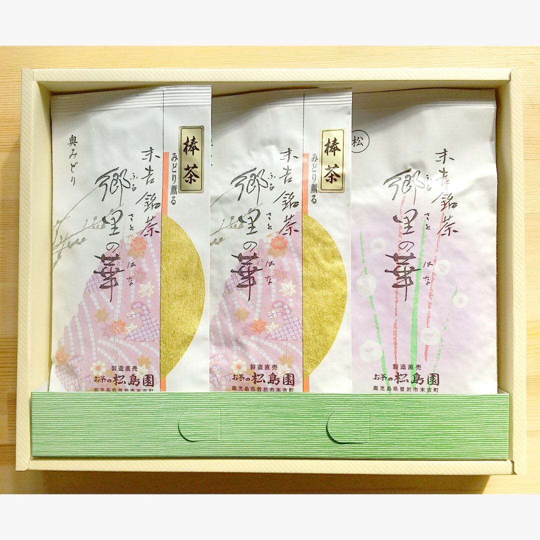 「は」セット:リーフ3本詰め合わせ(100g×3本)_松印×1本+奥みどり<棒茶>×2本セット (のし:不要)
